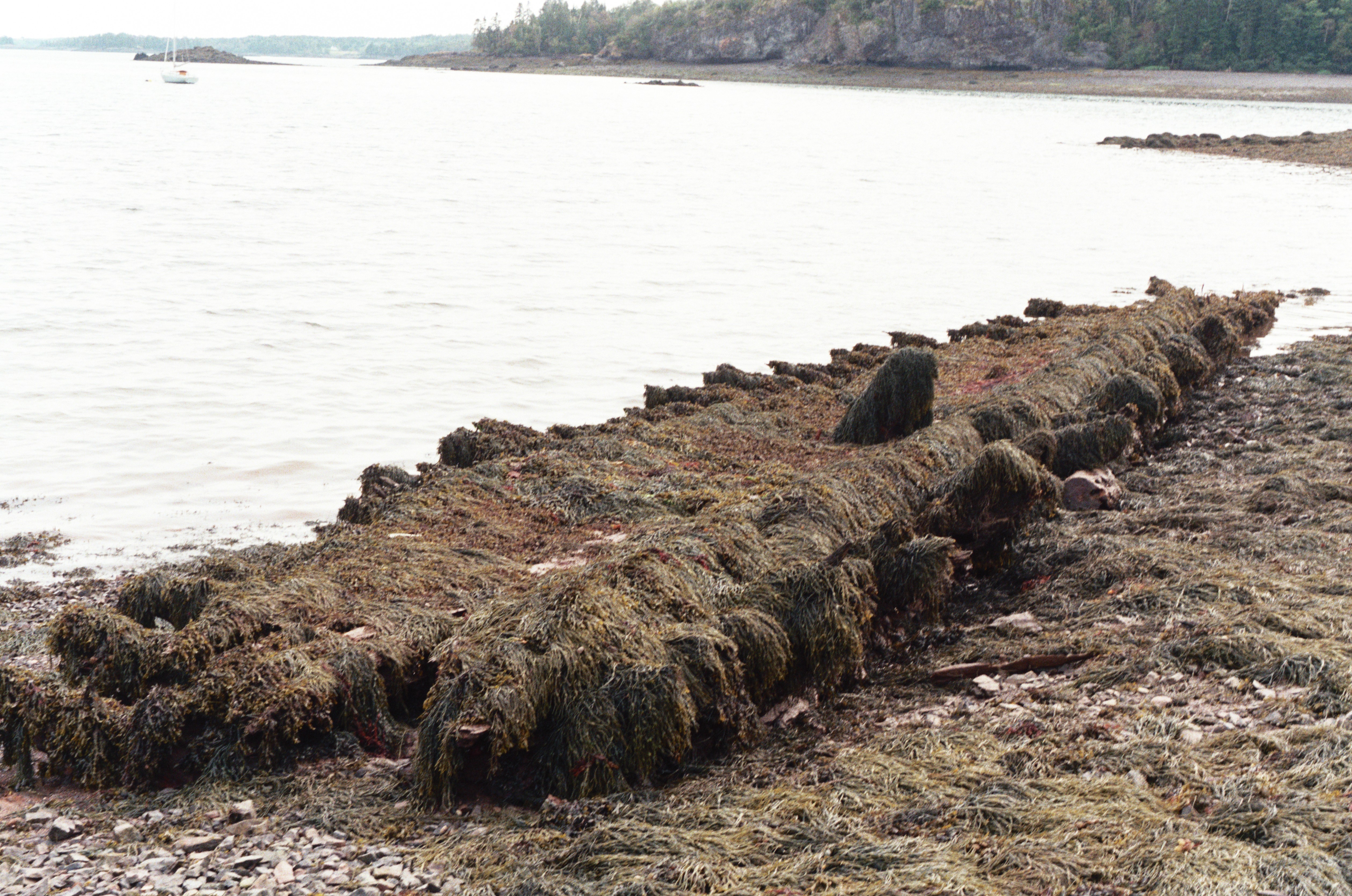 Keel and Ribs of Wooden-Hulled vessel exposed at low tide off Cony Beach.